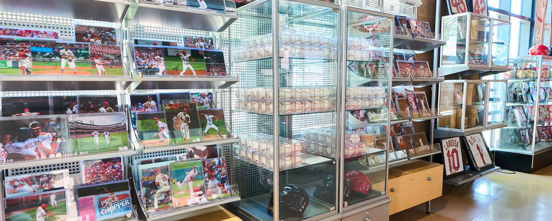 We provide fans the opportunity to take home a piece of the game every day; whether you are a Cardinals fan or MLB fan from out of town we are your "must stop" shop. Located below the Cardinals Museum.