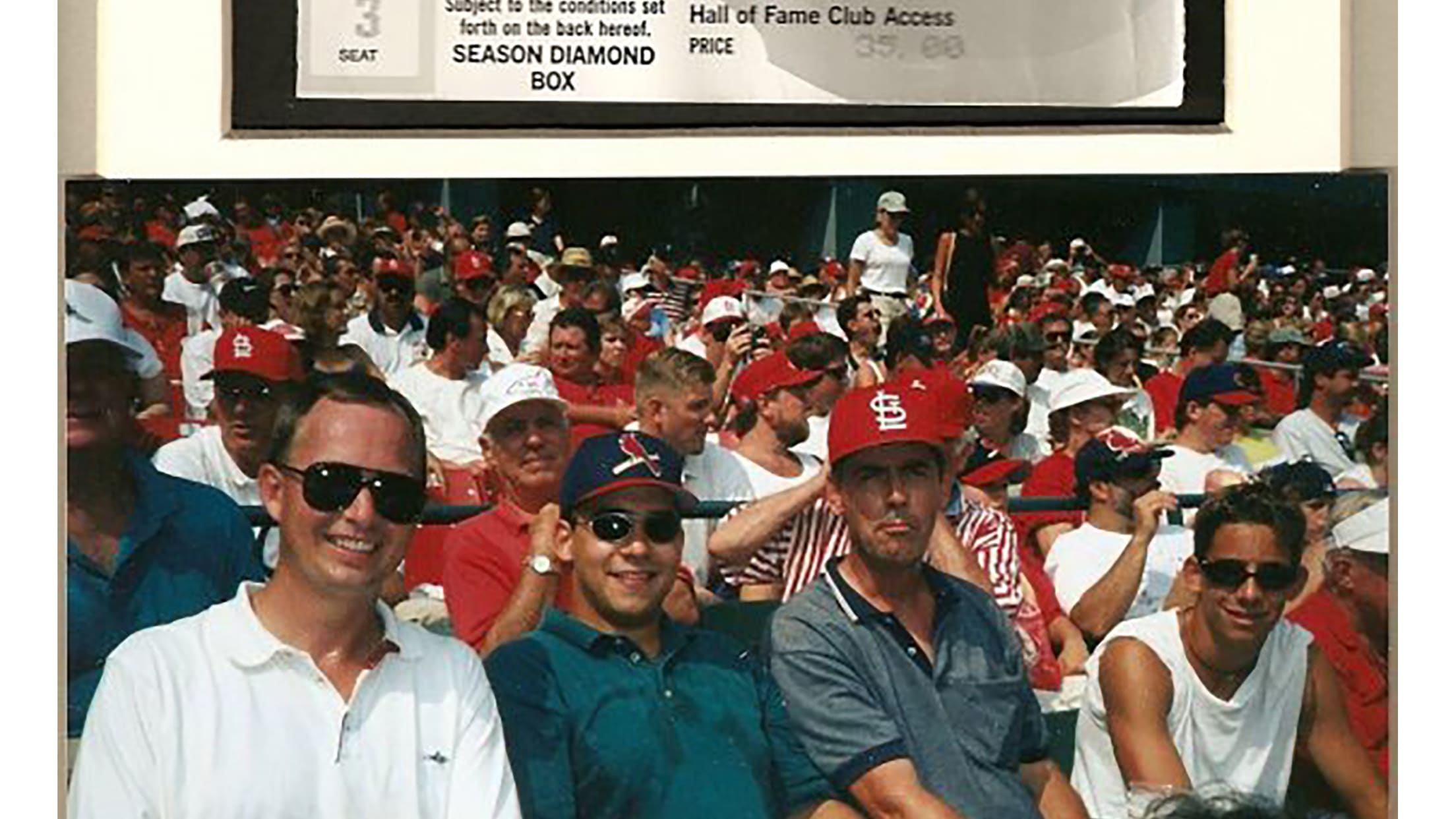 I was 14 during the HR race and the only thing that mattered in life was Cardinals baseball. My dad brought me to the game on Sun, Sep 27th, 1998. To say the atmosphere was electric is an understatement. People were there to see the new HR King go where no man had gone before. Could he reach 70? We had seats in left field, a few rows above the party boxes. Home Run 69 landed just a few rows behind us. It sank in that I could actually have a chance at getting HOME RUN #70. The place was going nuts. McGwire dug in for his final at bat. The buzz in the air was unlike anything I had ever witnessed. McGwire sat on a 1st pitch fastball and crushed it.....right at my section! I had just seconds to react. I ran from my seat two rows back to the railing, leaned over and the ball went no more than three feet under my glove into the party box below us. Even though I didn't catch it, I was on top of the world. I got to watch # 70 with my dad!