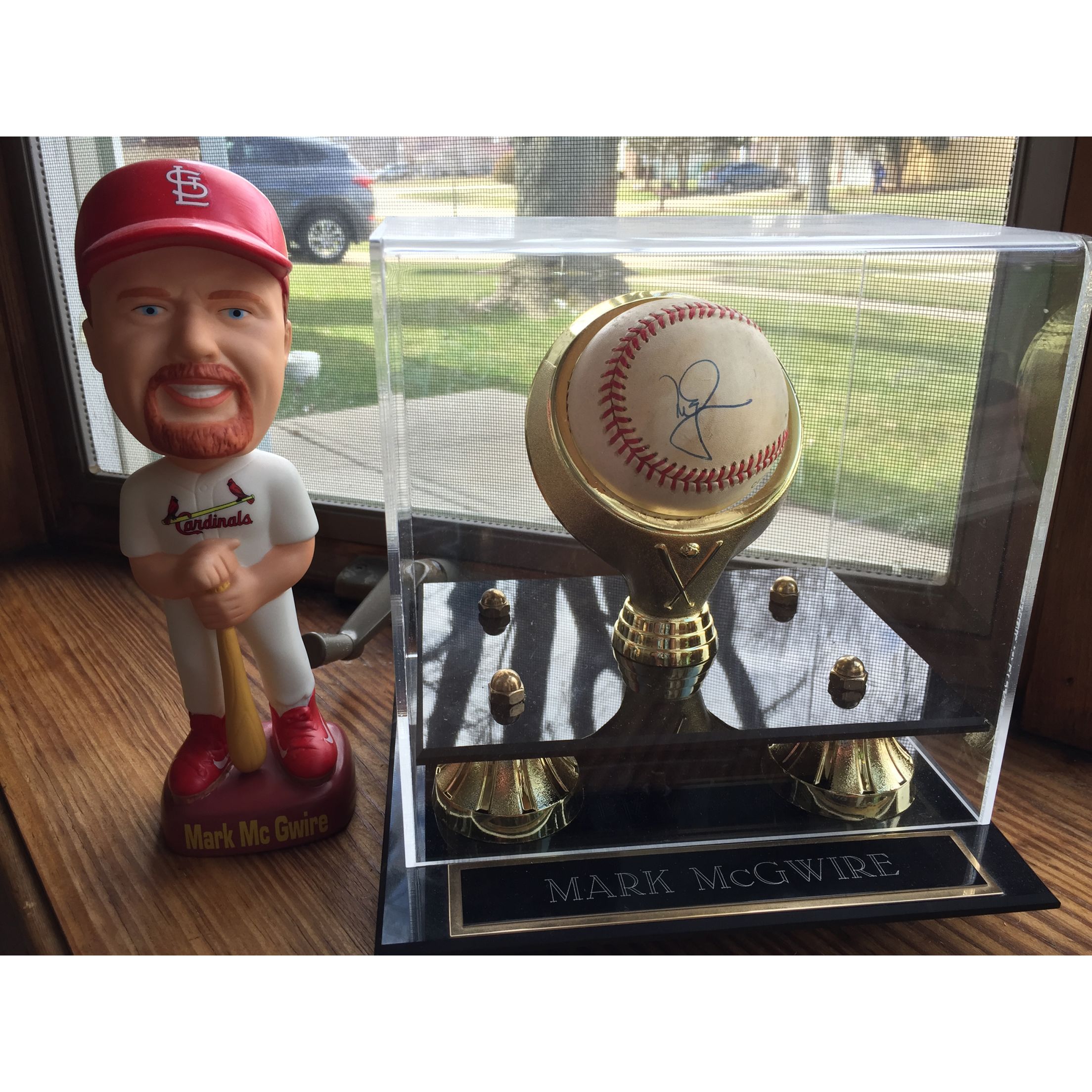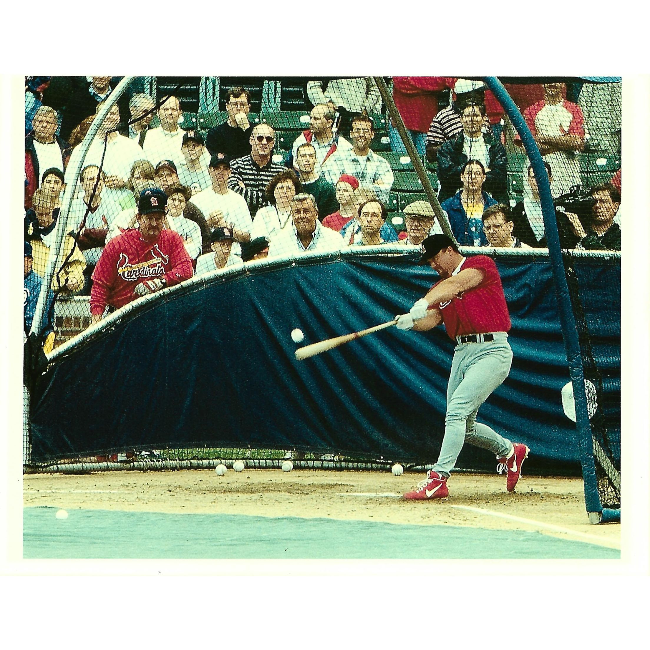 On June 8th, 1998 my family and I went to see the Cardinals vs. the White Sox in Chicago to catch McGwire and the home run race. We arrived early for batting practice and I got down to the Cardinals dugout in a prime spot hoping for an autograph from the man himself! During batting practice one of the groundskeepers threw me a ball (to date the only ball I have ever gotten at a game)! To my surprise and disbelief as McGwire finished warming up he started walking straight towards me. He seemed like a giant. I nervously handed him the ball and he signed it! To top it off McGwire later hit home run #29 that game and made a young Cardinals fan dream come true!