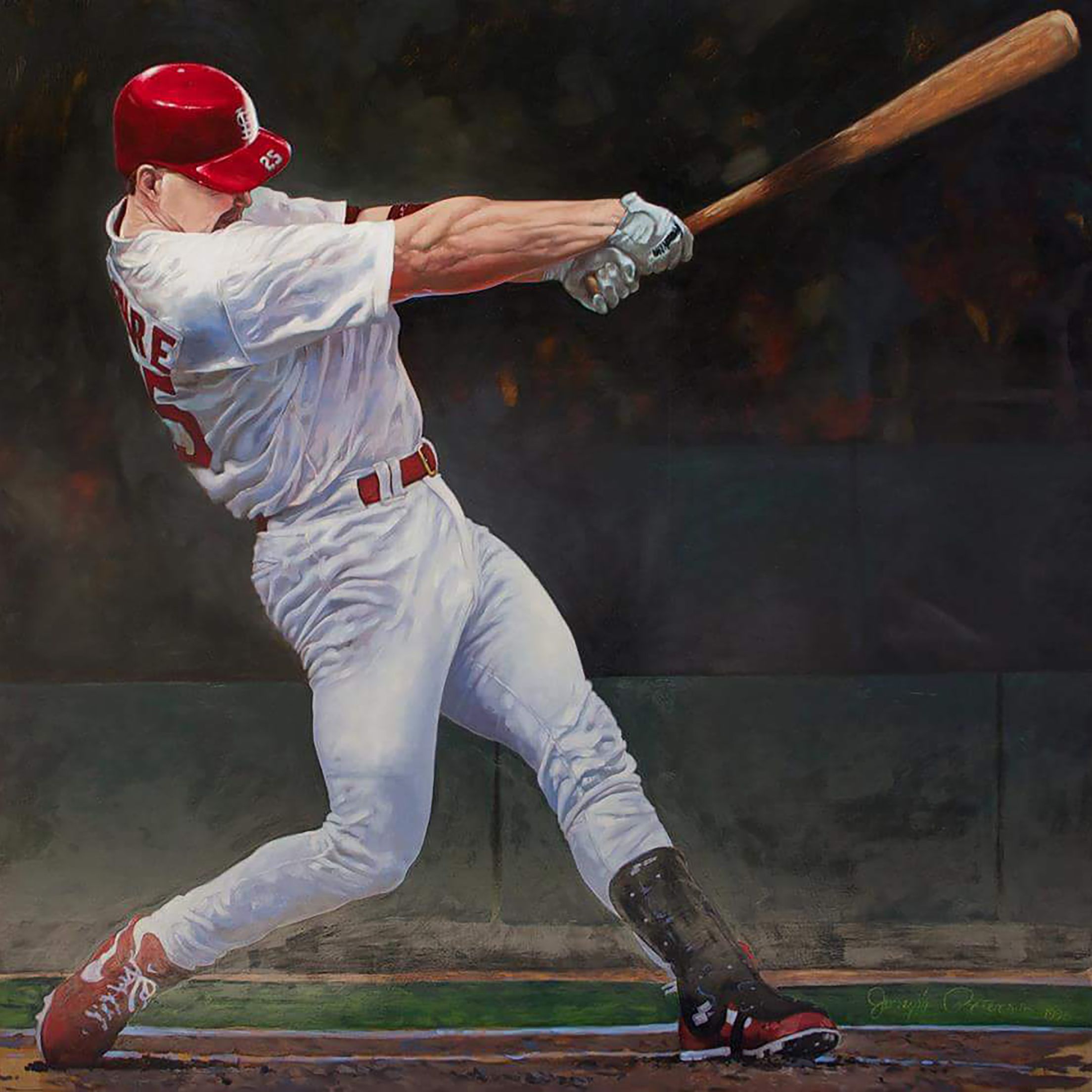 The 1998 season was one of the most exciting to date. Even though it is shrouded in controversy now, at the time it resurrected Baseball after the strike several years earlier. I was fresh out of Art School at the time and was inspired to paint a life-sized portrait of Big Mac breaking Roger Maris' record.
