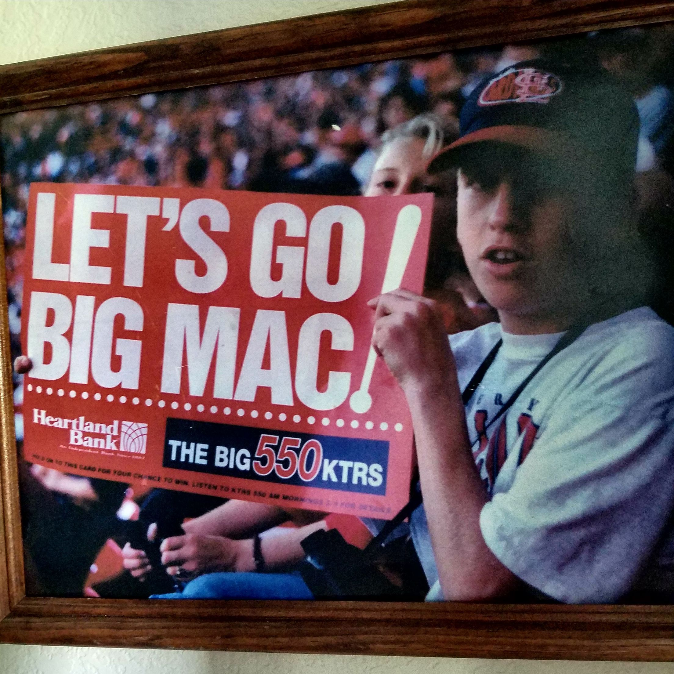 My husband & I moved to St. Louis in May 1997 so he could attend Logan Chiropractic. We went to our first Cardinals game in April '98. I was a couple of months pregnant with our 1st child, Cole. Lamaze classes began on Tuesdays in August. Jon came home one day & told me that his professor gave him 2 tickets to the game on Tuesday, Sept. 8th. He was so excited. That was the night they were projecting McGwire would break the home run record. We couldn't go because of Lamaze class! We walked in class on the 8th with 10 couples. Several men brought their radios to listen to the game. The hospital had a room with a TV & every time Big Mac came up to bat, we waddled down the hall to watch! We were so disappointed that we missed seeing it in person, but the funny part of the story was that Cole was born 2 weeks late by c-section! Cole grew up a huge McGwire fan, wearing #25 from the age of 4 until high school. He played first base & tried his best to emulate Big Mac's swing.
