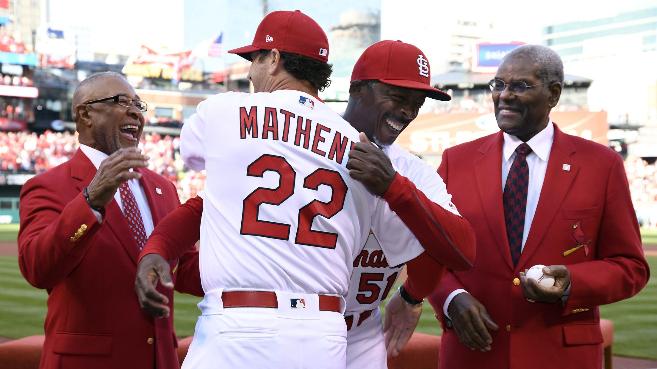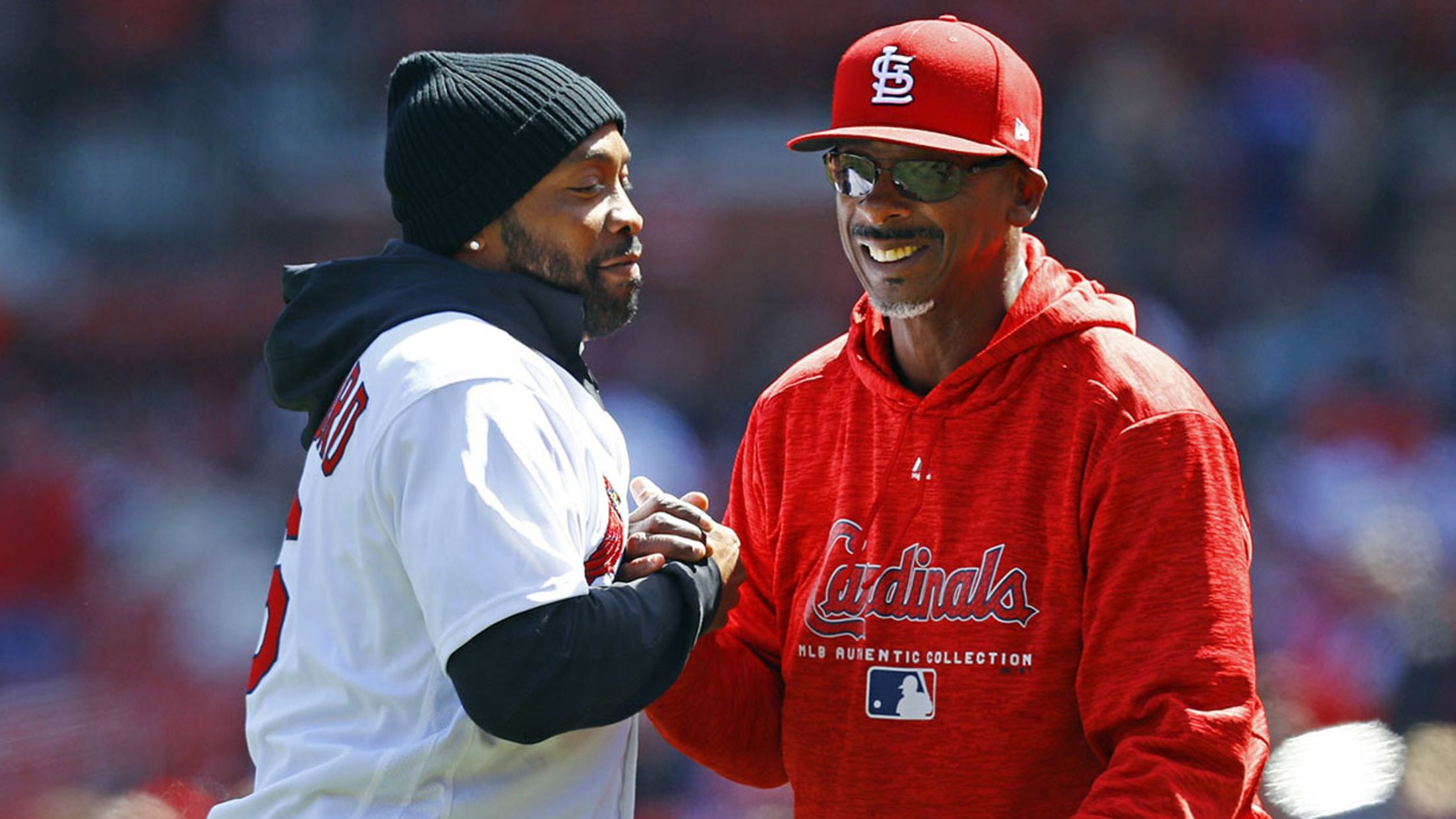 Saturday, April 7, at St. Louis - Cardinals 5, Diamondbacks 3: Ray Lankford, a nominee on the Cardinals' 2018 Hall of Fame ballot, threw out the ceremonial first pitch to former teammate Willie McGee. Billy Hurst/St/ Louis Cardinals