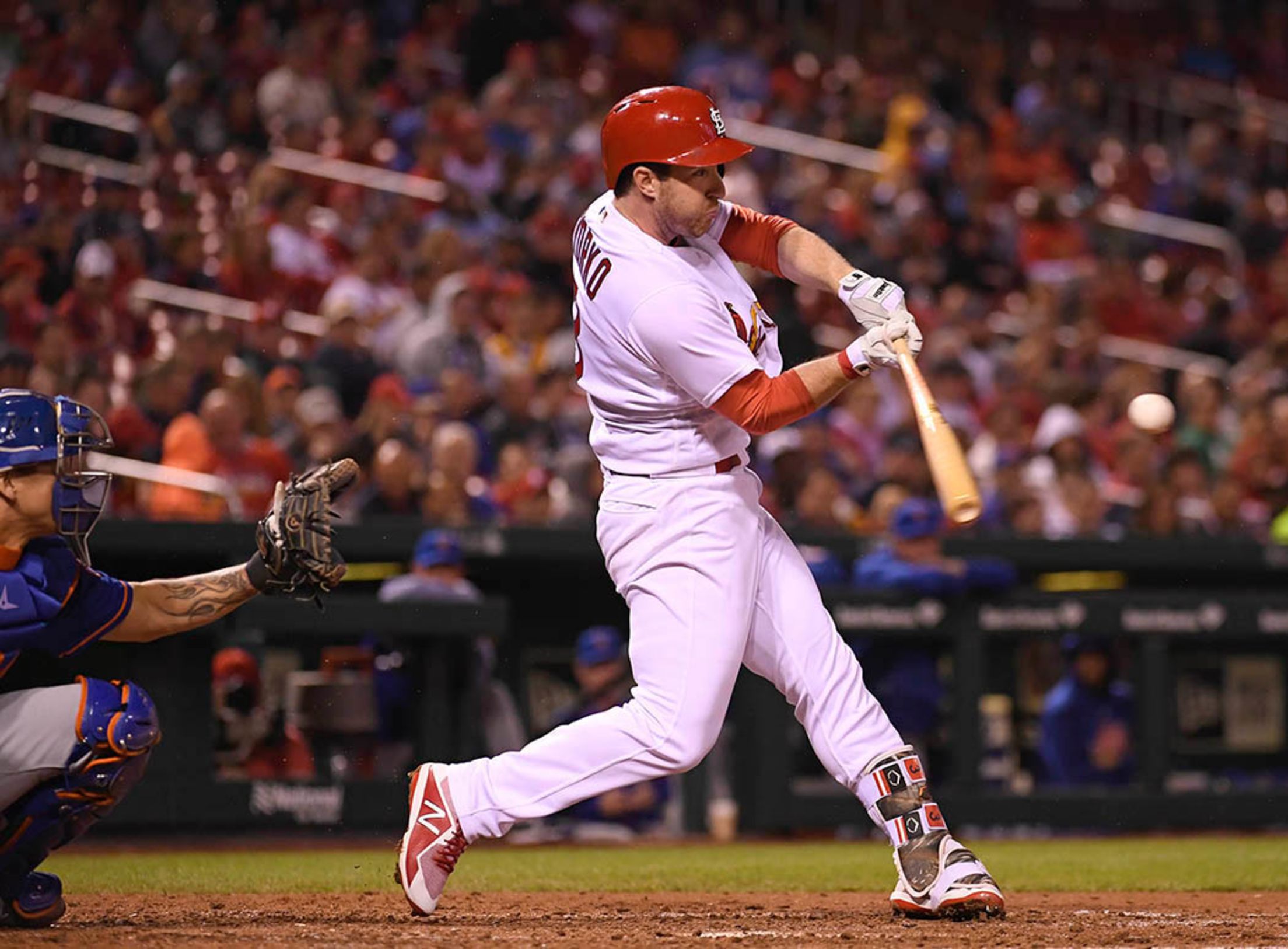 Wednesday, April 25, at St. Louis - Cardinals 9, Mets 1: Jedd Gyorko rolled out the barrel for his first home run of 2018, a two-run shot in the fifth inning that extended the fun and the lead to eight runs. It was the Cards' 32nd homer of 2018, second-most in the NL. Scott Rovak/Cardinals