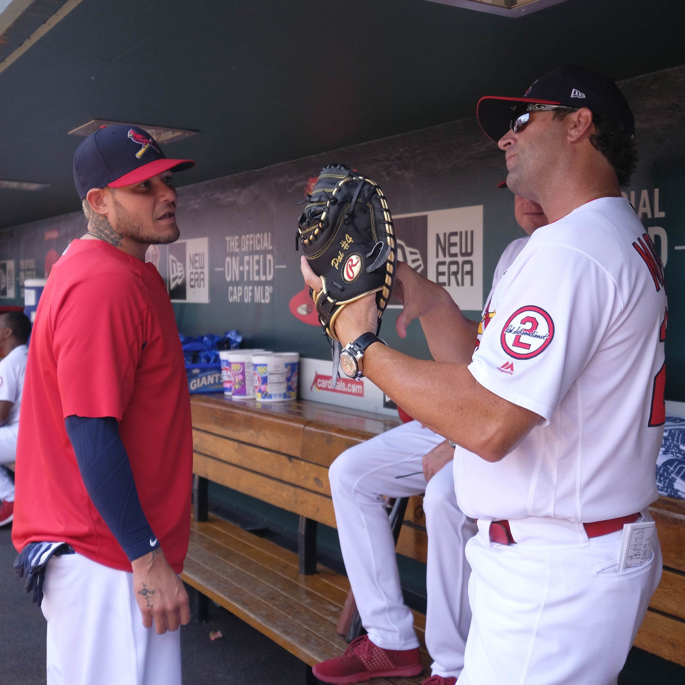 Sunday, July 1, Braves 6, Cardinals 5: The kind of meeting you wish you'd be invited to … two All-Star catchers talking shop before Sunday afternoon baseball in St. Louis. Scott Rovak/St. Louis Cardinals