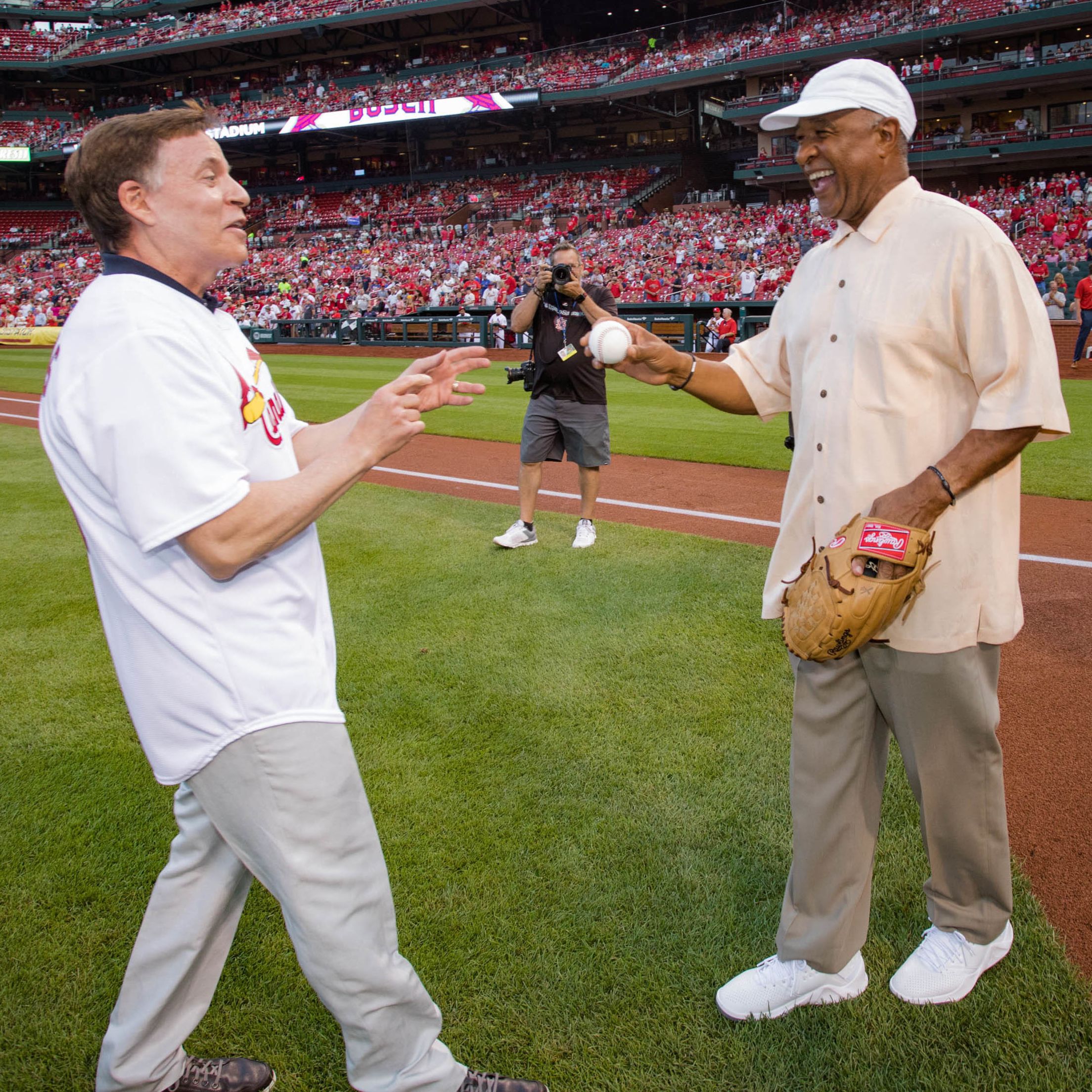 Monday, June 25, at St. Louis-Cardinals 4, Indians 0: You couldn't help but smile when Hall of Famer Ozzie Smith and soon-to-be Cooperstown enshrine Bob Costas met on the field after the broadcaster's ceremonial first pitch on his bobblehead night. Benjamin Munson/St. Louis Cardinals
