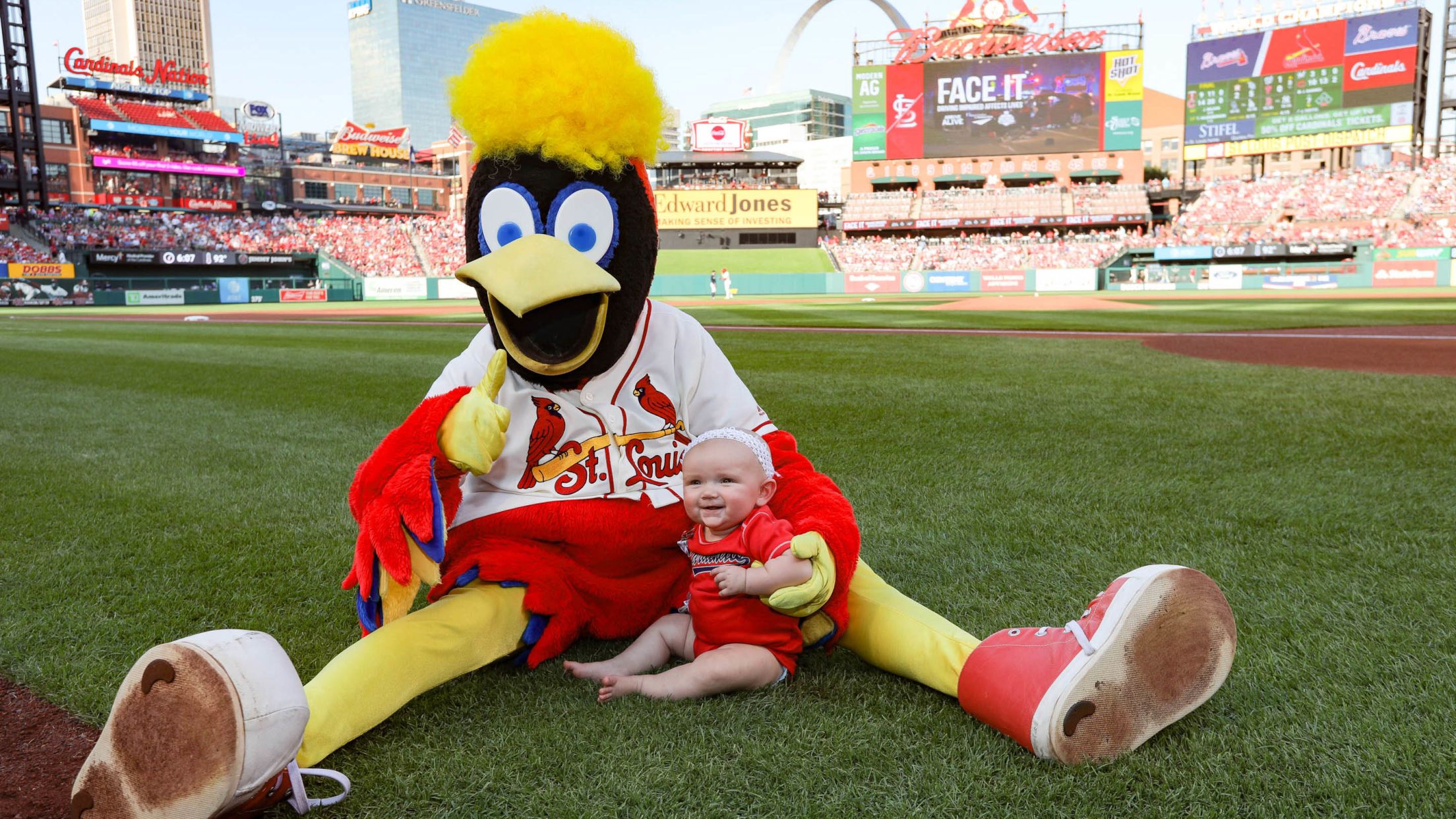Saturday, June 30, at St. Louis-Braves 11, Cardinals 4: It was no secret where Fredbird's hair color loyalties stood on Carlos Martinez Mystery Hair Bobblehead Night. Benjamin Munson/St. Louis Cardinals