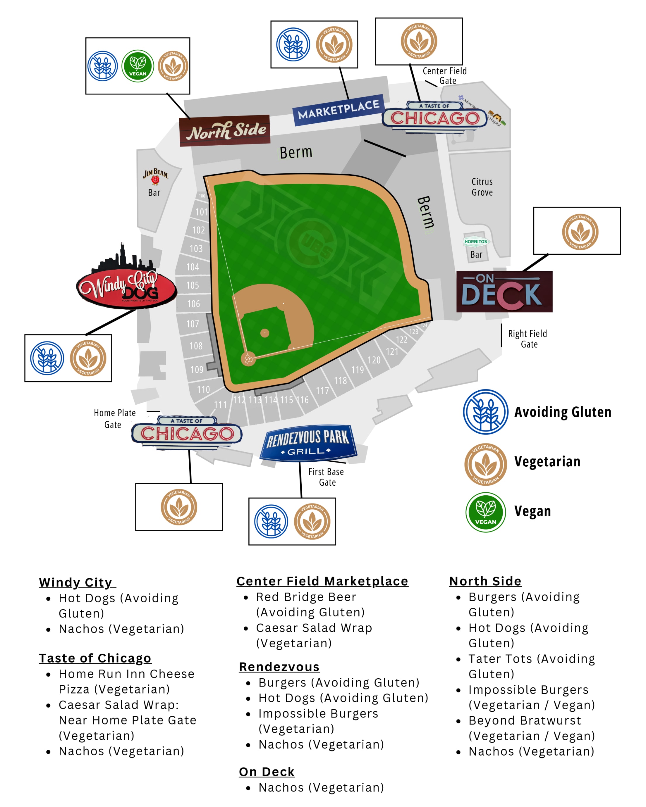 For guests with dietary restrictions, the Club offers a variety of food options at Sloan Park. Guests with dietary restrictions are also welcome to bring food prepared at home into the ballpark in clear bags or containers. If you have any questions, please email mesa@cubs.com or call 480-668-0500.