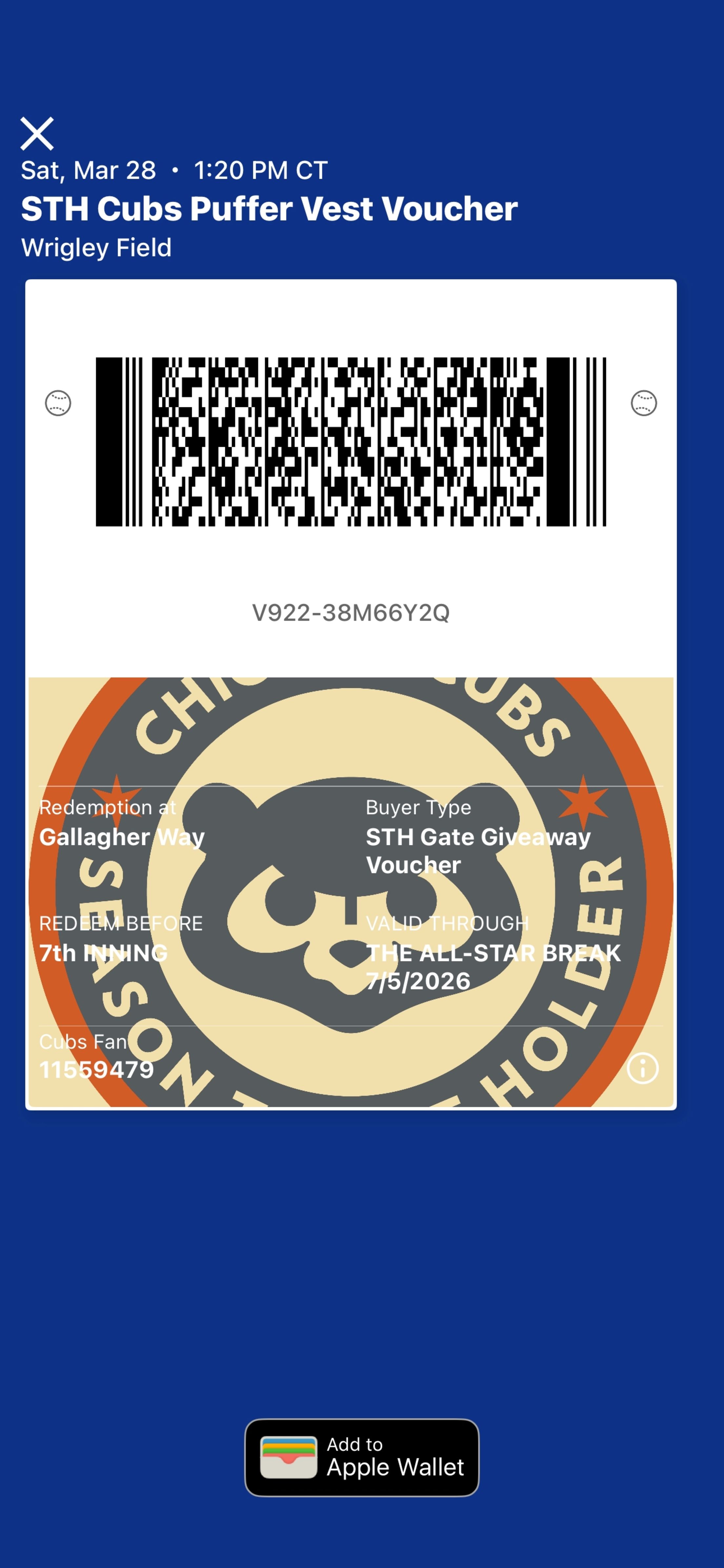 All selections are final. Our vendor may be able to update a submission that was made in error by emailing Cubs@BDAinc.com prior to the March 20 deadline. Adjustments after that date cannot be accommodated. Items are subject to availability. If a gate giveaway item shows as out of stock on the selection site, that item is not available to select in your change request.