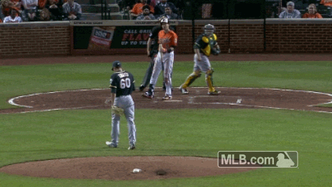 Few things are sweeter for a pitcher than striking out the side -- short of an immaculate inning, you can't do better than blowing three straight batters away, right? You didn't just do your job, you slammed the door. You're walking on air. So, after A's reliever Andrew Triggs struck out three in a row in Game 2 of Saturday's doubleheader in Baltimore, it's only natural that he finished his delivery to the first-base side of the mound ... and kept right on walking off the field.