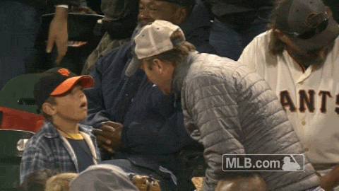 It's every dad's dream: taking your kid to the ballpark, letting him see his favorite team up close, then putting the cherry on top by snagging a souvenir to bring home. And during the Giants' 7-0 win over the Braves on Friday, one dad was so close to pulling it off. Conor Gillaspie fouled one off over the third-base dugout, and the ball bounced right toward our hero -- but alas, he couldn't handle the hop, and the ball bounced away.