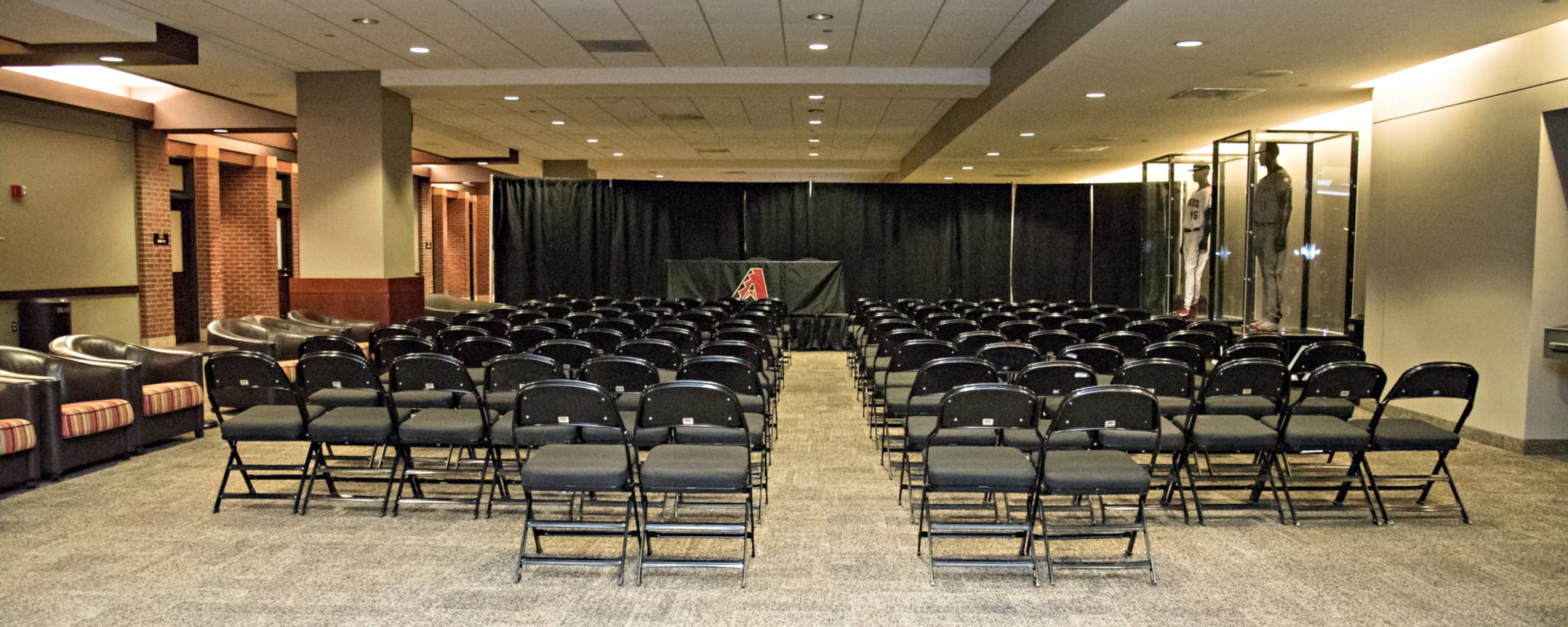 The First Base Suite Level is the ideal place to hold a press conference, trade show or class-style meeting. The open space can also serve as the perfect spot for your guests to network and mingle.