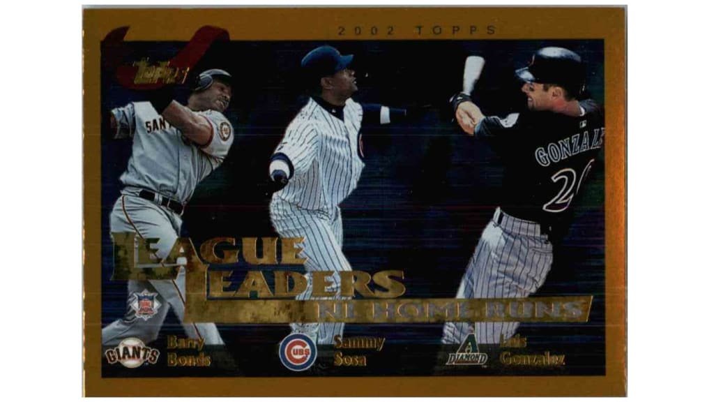 His home run total was good enough for a third-place finish in the Majors, and as a result he scored a place on this cool “League Leaders” card alongside Barry Bonds (73) and Sammy Sosa (64), two of the great sluggers in history, the following year.