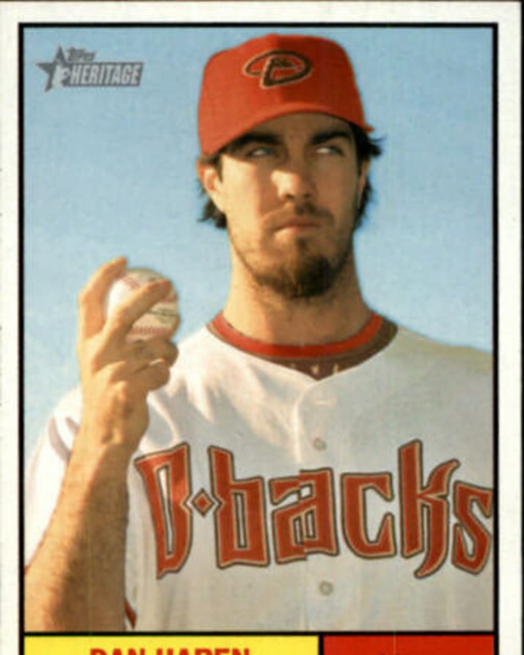 On this Topps Heritage card, Haren looks determined to use that 88 mph fastball to dominate opposing hitters.