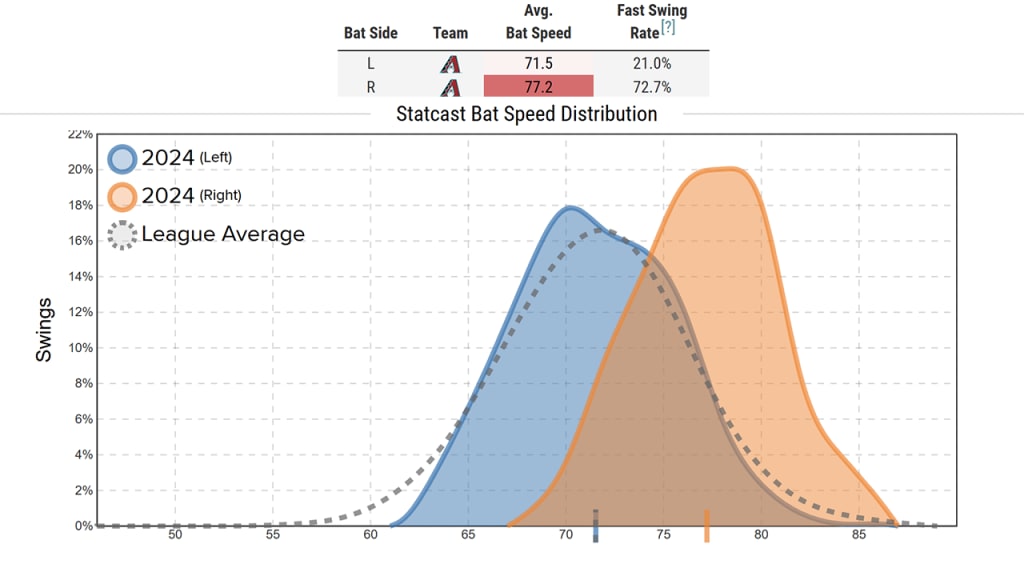 Righty Marte has a fast-swing rate of more than three times higher than Lefty Marte does; it’s not surprising that Righty Marte had a slugging percentage nearly 200 points higher, too. They're two entirely different hitters.