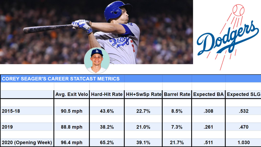 4-T) Corey Seager: .308 4-T) DJ LeMahieu: .308 Seager in 2019: .261 xBA Seager in Opening Week 2020: .511 xBA
