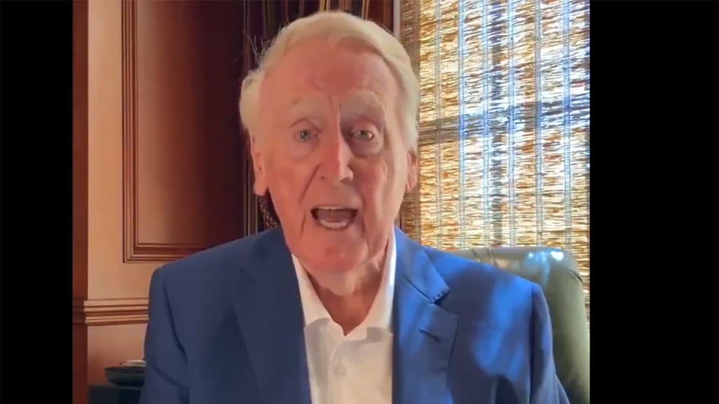 After nearly four years, Scully's back -- not on the mic, but on Twitter (@TheVinScully). Naturally, he announced his return in the way only he could: With a video message spoken as if he was on the broadcast.