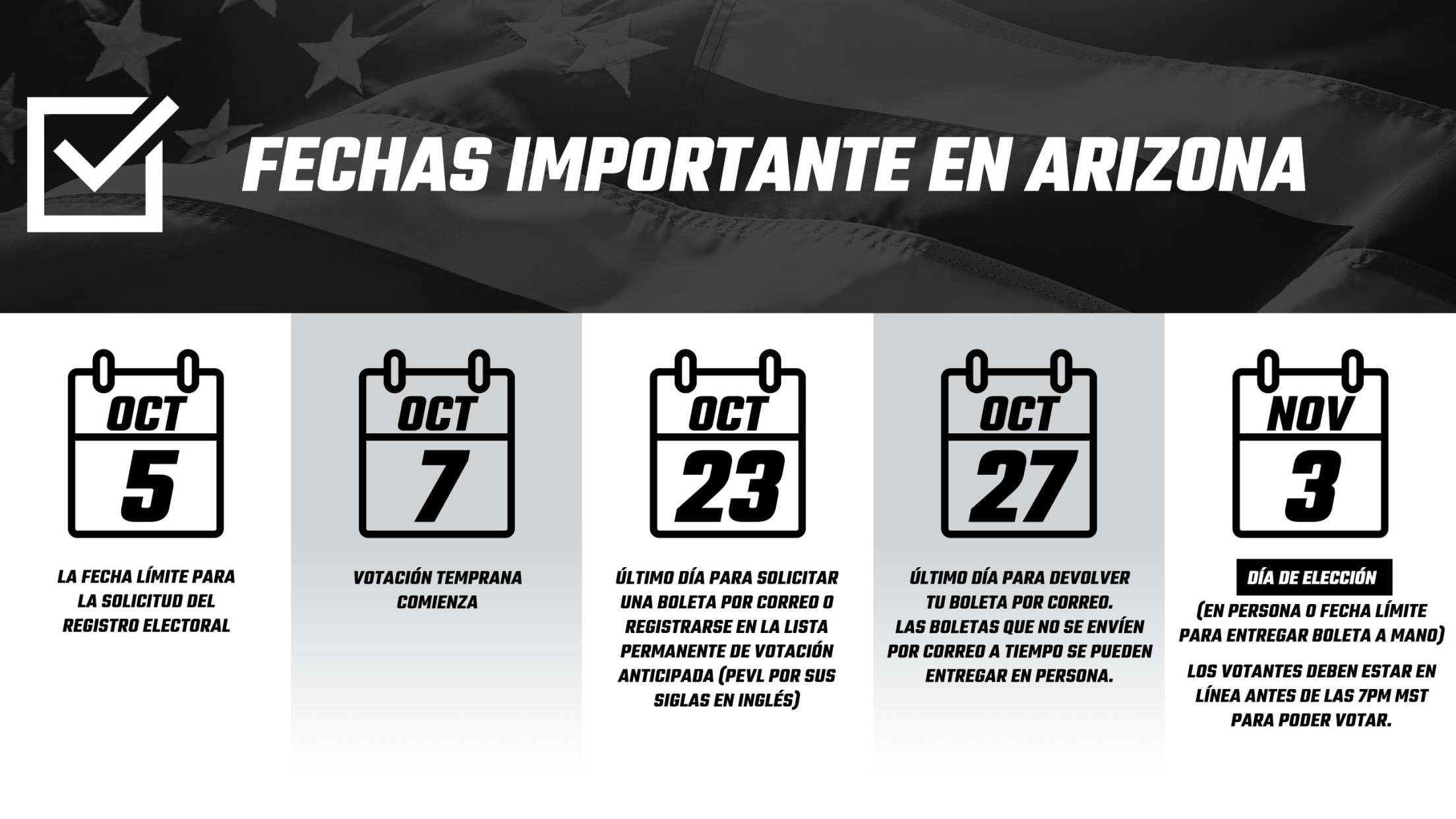 Todo elector calificado debe mostrar una prueba de identidad en el lugar de votación antes de recibir una boleta. Vea la forma aceptada de identificación en Arizona aquí.