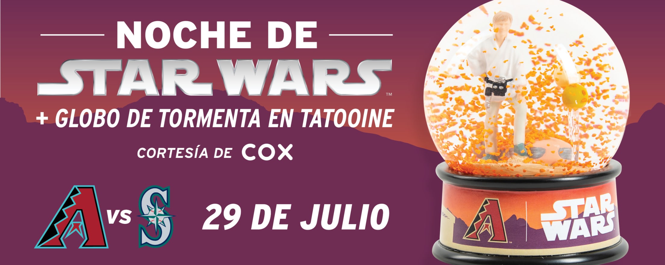 La fuerza te acompaña en el Chase Field, pero será todavía más fuerte en la Noche de Star Wars el sábado 29 de julio cuando los primeros 15,000 aficionados en llegar al estadio recibirán el Globo de Tormenta en Tatooine, cortesía de Cox.