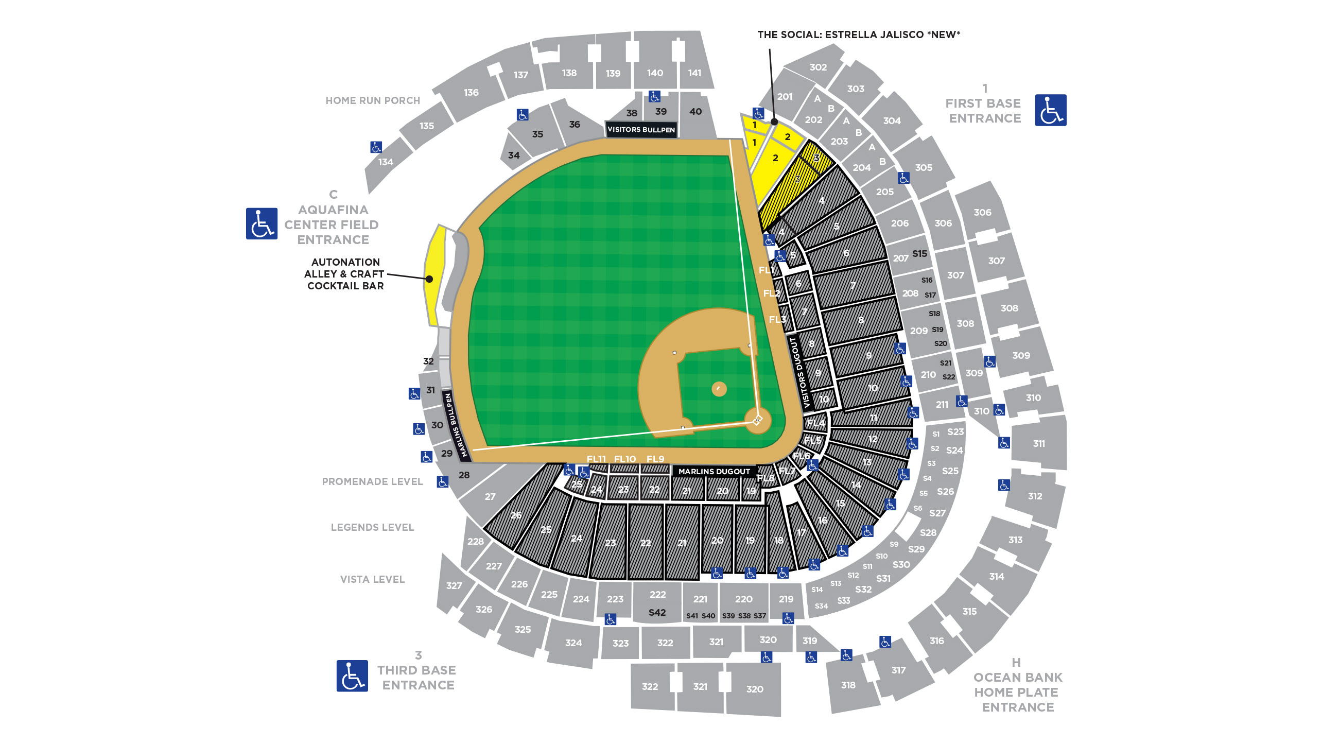 El Estrella Jalisco Party Pass brinda acceso exclusivo a dos (2) locaciones para ver el juego de pie en el loanDepot park con una (1) pulsera de pase para la fiesta. Ambos lugares están en el nivel Promenade y le permiten a quienes tengan el Party Pass socializar con familiares y amigos, comer, beber y ver la acción del juego desde distintos puntos de vista únicos. Los titulares del Party Pass pueden ir de un lado a otro a lo largo del juego entre los dos destinos exclusivos: The Social presentado por Estrella Jalisco y AutoNation Alley.