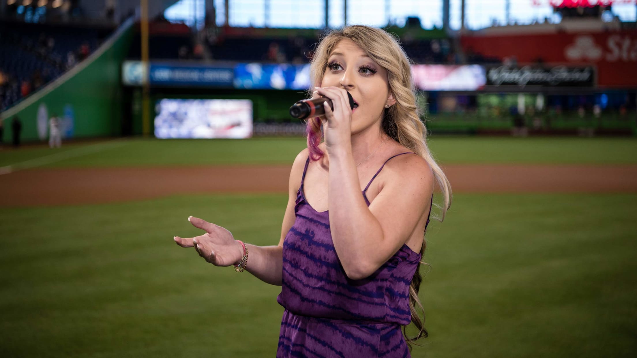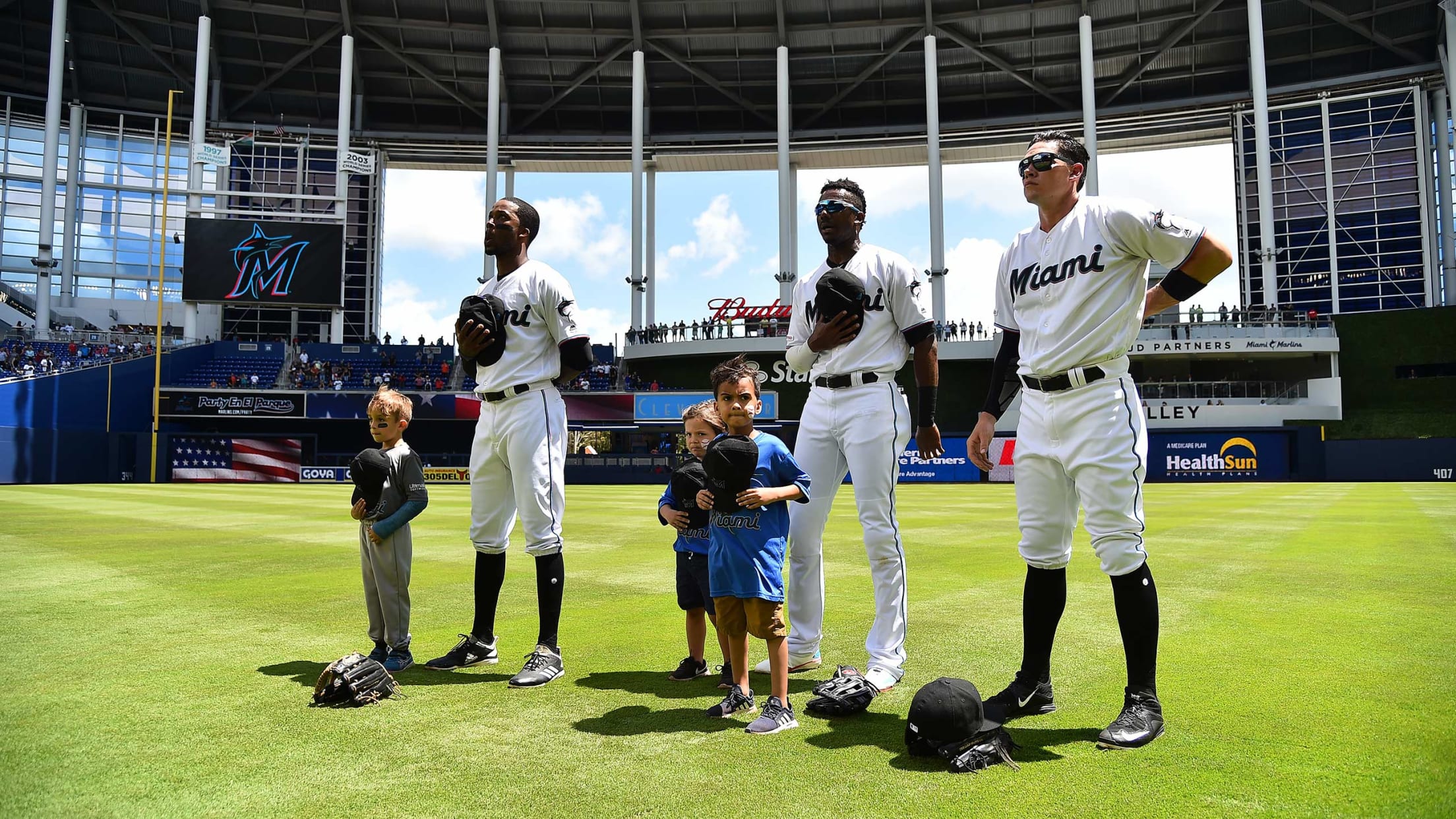 Párate junto a los jugadores de los Marlins para vivir la experiencia durante el Himno Nacional.