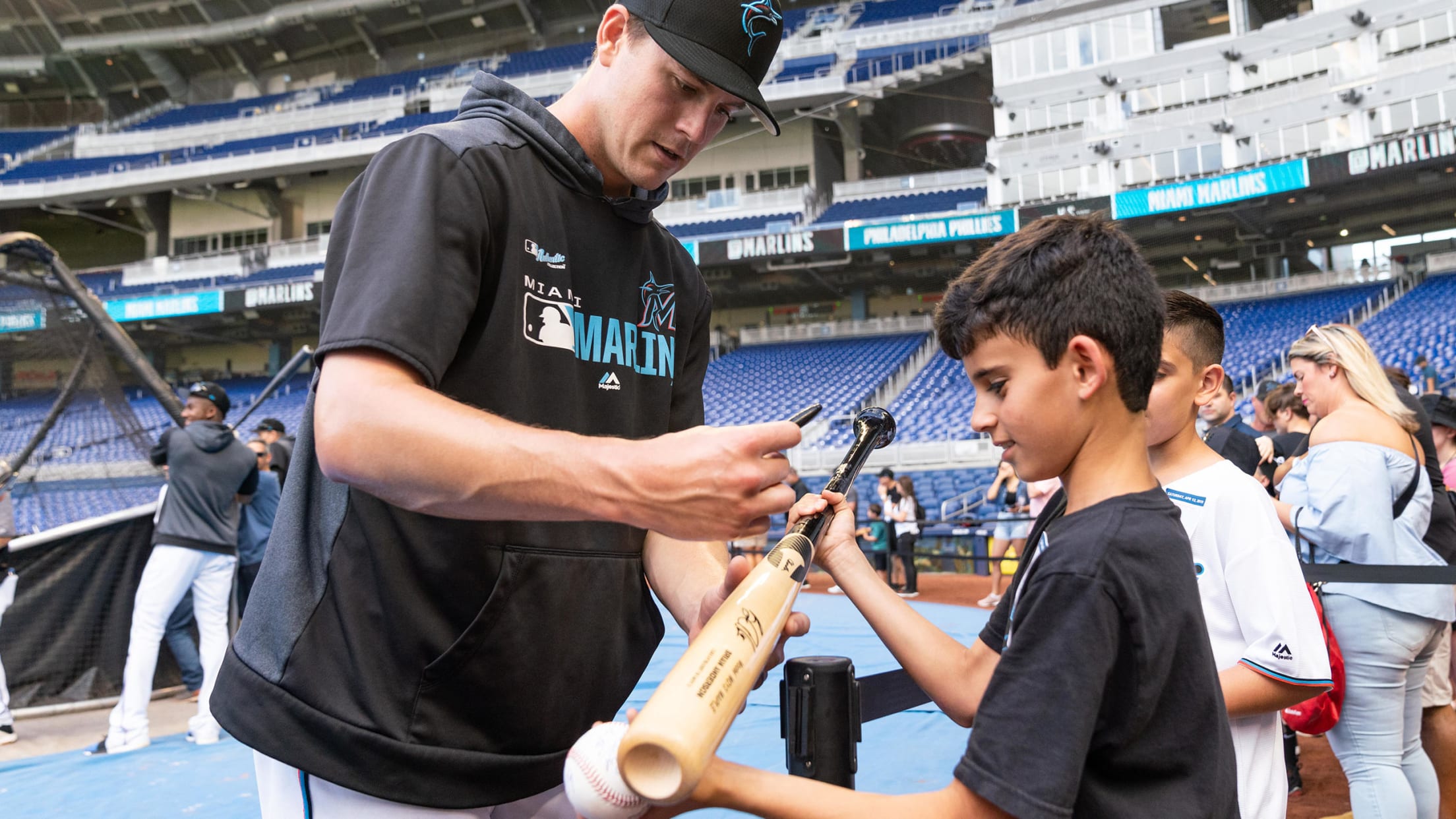 - Recibe un mensaje de bienvenida en la pizarra MarlinsVision en el Marlins Park.