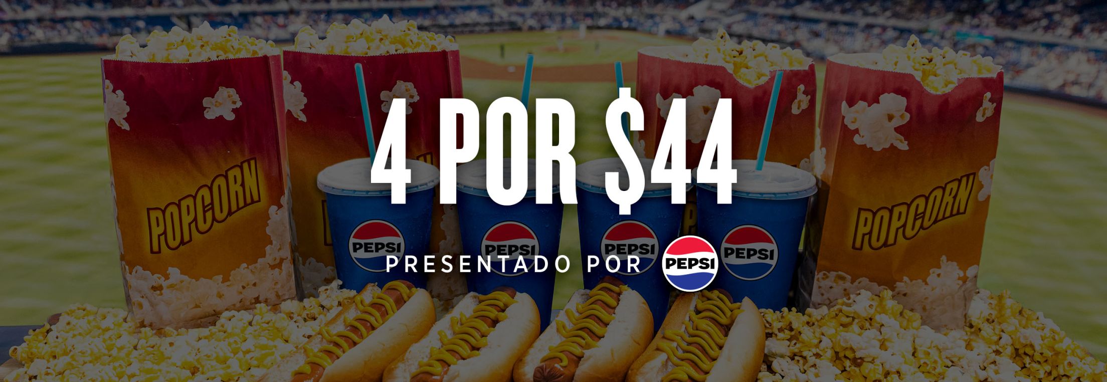 Por solo $44, recibirá cuatro (4) boletos para el juego, cuatro (4) hot dogs, cuatro (4) sodas o aguas y cuatro (4) palomitas de maíz pequeñas.