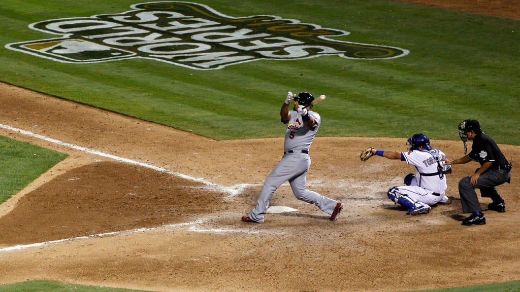 Esos tres bambinazos de Pujols en una misma jornada ocurrieron exactamente un año antes, en la que sería su última zafra con los Cardenales. Y con ellos hizo historia en la Serie Mundial.