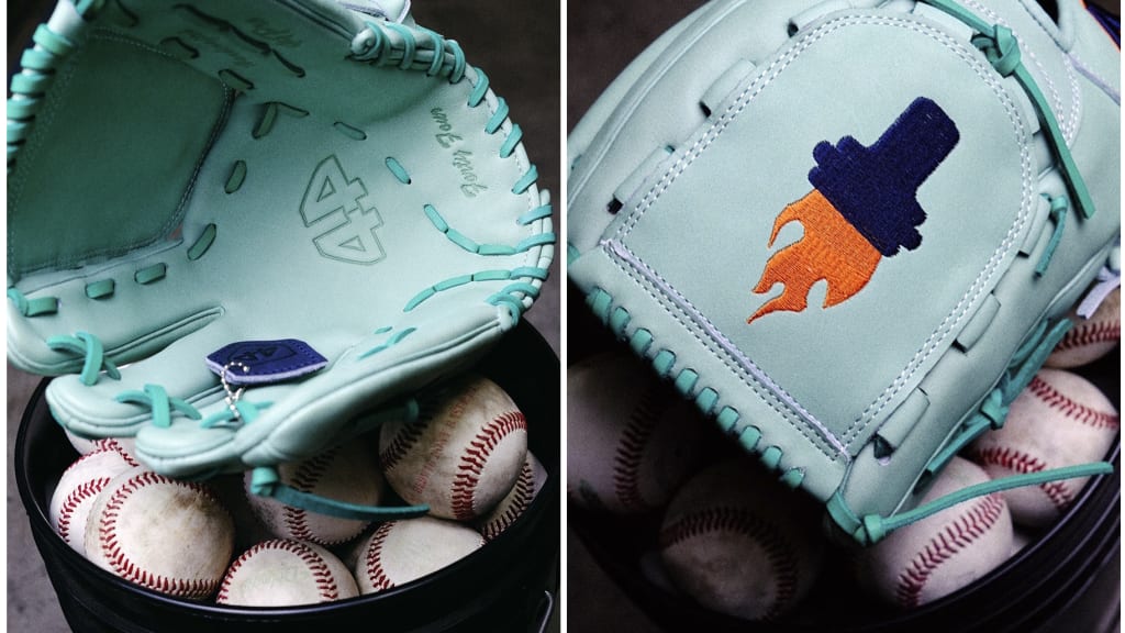 Para la Serie Mundial, tiene un par de guantes nuevos en azul marino con oro metálico, uno con 27 llamas y otro con 27 banderines, el número que representa el total récord de títulos de los Yankees.