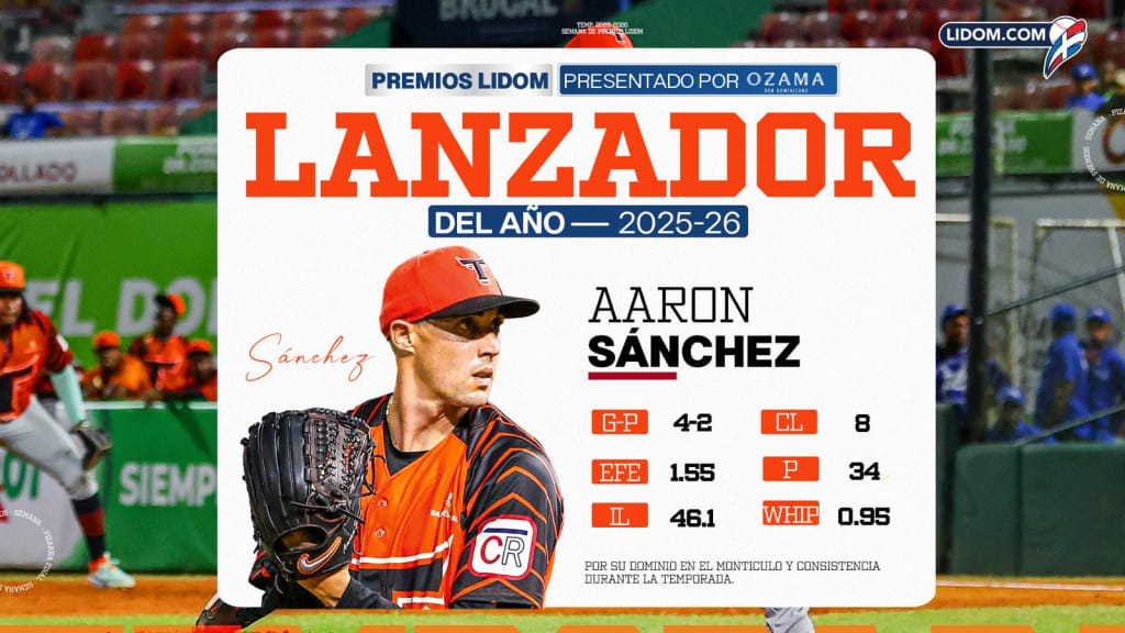 Santo Domingo.- El derecho Aaron Sánchez, de los Toros del Este, fue elegido Lanzador del Año del campeonato 2025-2026 de la Liga de Béisbol Profesional de la República Dominicana (LIDOM), tras encabezar la votación realizada por un jurado nacional de comunicadores especializados.