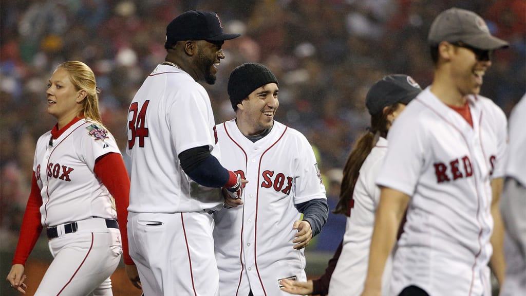 Más adelante, fueron presentados Jordan Leandre, sobreviviente del cáncer y quien había cantado el himno de los Estados Unidos en el Fenway Park en el 2004; la familia de Allison Lundy, niña con cáncer a quien Ortiz le prometió un jonrón y cumplió, fallecida a los 10 años en el 2012; Pete Frates, ex jugador del béisbol universitario en Boston College y quien sufre esclerosis lateral amiotrófica (ELA, o el mal de Lou Gehrig); y Jessica Kensky y Patrick Downes, heridos en los ataques del Maratón de Boston.
