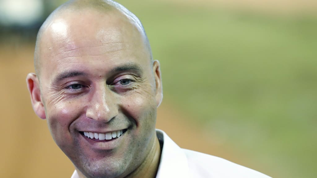 MIAMI -- Derek Jeter charló el lunes por la mañana a unas cuantas filas del plato en el Marlins Park. Sus palabras por momentos quedaron ahogadas por el ruido de las cuadrillas de construcción; acero golpeando acero en un área en construcción detrás de la barda del jardín central, o el zumbido de los motores que mueven la maquinaria pesada.