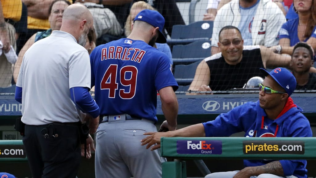 Arrieta abandonó la lomita en ese mismo inning, por una aparente lesión en la pierna derecha. El ganador del trofeo Cy Young en 2015 se sujetó la pierna varias veces luego de hacerle un pitcheo a Bell.