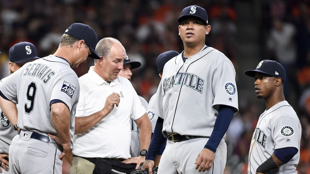 Hernández, en su décima apertura de un juego inaugural, toleró cinco hits y dos carreras, además de ponchar a seis en cinco innings, antes de salir por rigidez en la ingle. Hernández hizo una mueca de dolor al correr para cubrir la primera base para el segundo out del cuarto inning.