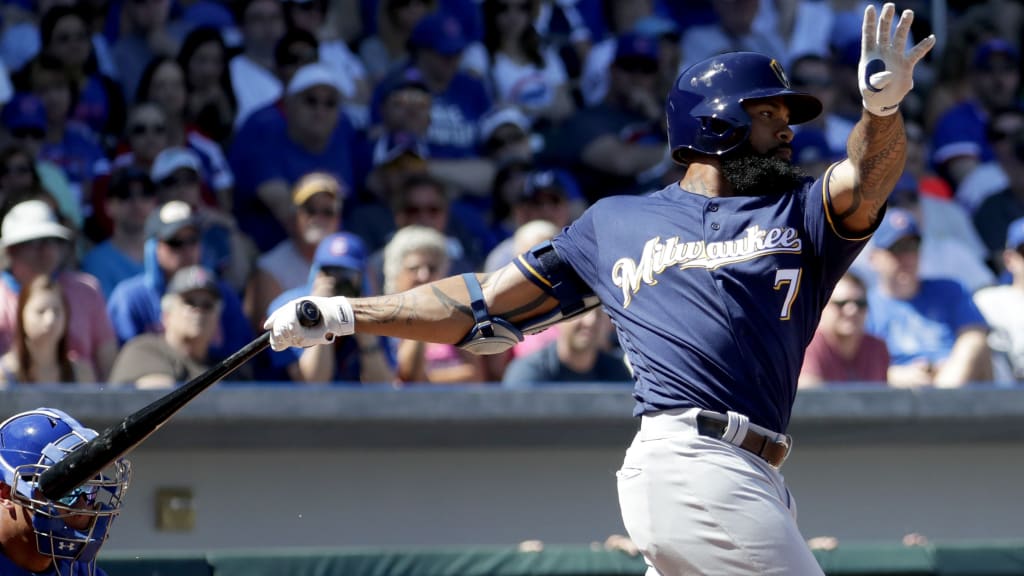 Eric Thames de los Cerveceros conectó dos hits, incluyendo su primer cuadrangular de la primavera en la apertura del quinto contra Mike Montgomery. Thames estaba de 24-4 antes del partido del martes.