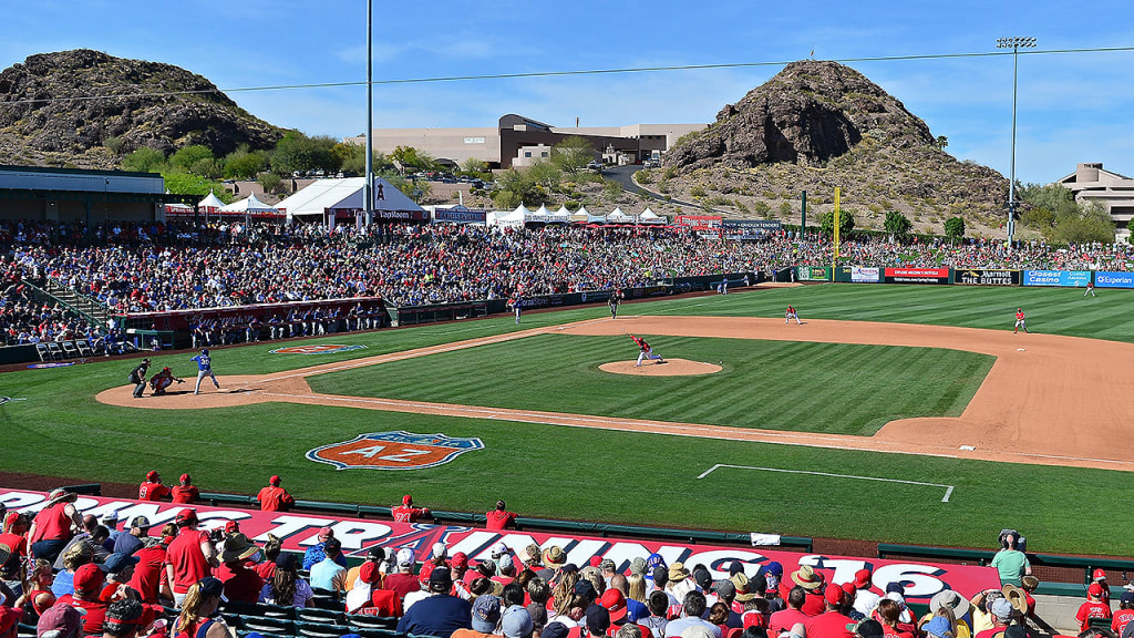 Fundado en 1968, el Tempe Diablo Stadium ha sido el hogar de los Entrenamientos de Primavera de los Angelinos desde 1993. Aunque es uno de los estadios más antiguos en la Liga del Cactus, se realizaron grandes renovaciones en el 2005. El terreno principal -- en 1999 bautizado Gene Autry Field en homenaje al ex dueño de los Angelinos -- tiene como fondo un cuello volcánico que sobresale sobre el jardín izquierdo.