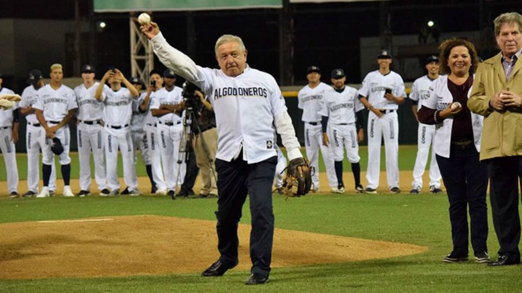 El presidente Andrés Manuel López Obrador estuvo presente para inaugurar el remozado estadio de los Algodoneros y lanzó la primera bola.
