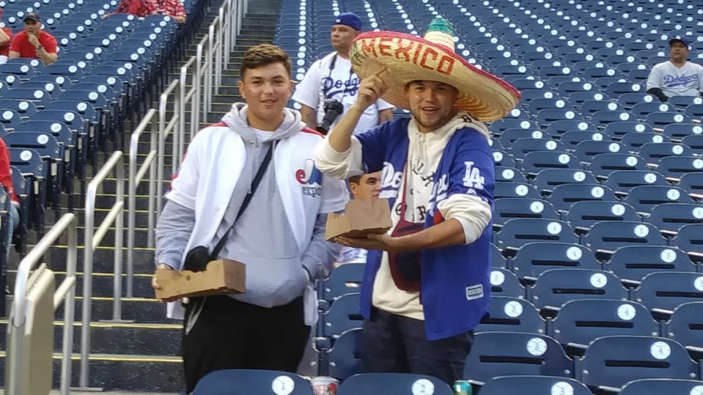 Vistiendo un enorme sombrero con “Viva México” escrito al frente, Jonathan Baxter, de 24 años, se veía en las primeras filas del hogar de los Nacionales con una camiseta de los Dodgers. Su hermano Shawn, de 16, estaba sentado al lado con un jersey de los Expos de Montreal—franquicia que se convirtió en los Nacionales de Washington en el 2005—claramente apoyando a los capitalinos.