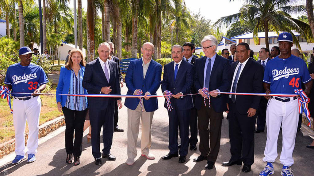 SAN ANTONIO GUERRA, República Dominicana -- Los Dodgers el martes inauguraron su recién renovada academia a las afueras de Santo Domingo, República Dominicana, demostrando el compromiso de los dueños del equipo a la región y la gran importancia de la sociedad caribeña con el béisbol. El comisionado de las Grandes Ligas, Rob Manfred; el presidente de la República Dominicana, Danilo Medina; el jefe ejecutivo de los Dodgers, Mark Walter y varios de los directivos del club fueron acompañados por las leyendas quisqueyanas Ralph Avila, Manny Mota y Ramón Martínez, además de jugadores activos de Los Angeles como Pedro Báez y ex miembros del equipo Juan Uribe y Joel Peralta.