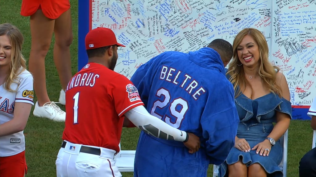 Después de que Beltré se vistió con el regalo que le hicieron sus excompañeros y que entregó Andrus -- una bata azul con el apellido y el número de Beltré en la espalda --el torpedero venezolano de los Rangers le dio un último golpe en la cabeza antes de salir jugando. A Beltré no le gusta que lo toquen ahí, y Andrus por lo general era el primordial instigador después de que Beltré sacudía un cuadrangular o conectaba algún otro imparable crucial para los Rangers.