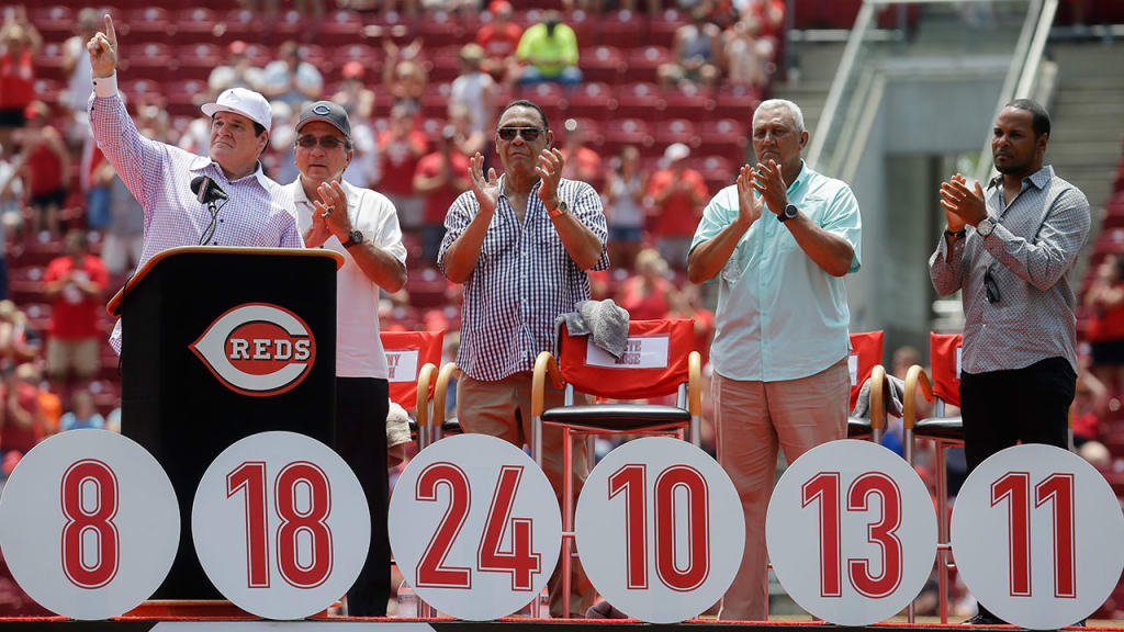 El domingo, los Rojos añadieron el 14 de Rose a su exhibición de números retirados detrás del plato. El número de Rose es el décimo retirado por el primer equipo profesional de béisbol, junto con el 42 de Jackie Robinson, que ha sido retirado por las Grandes Ligas.