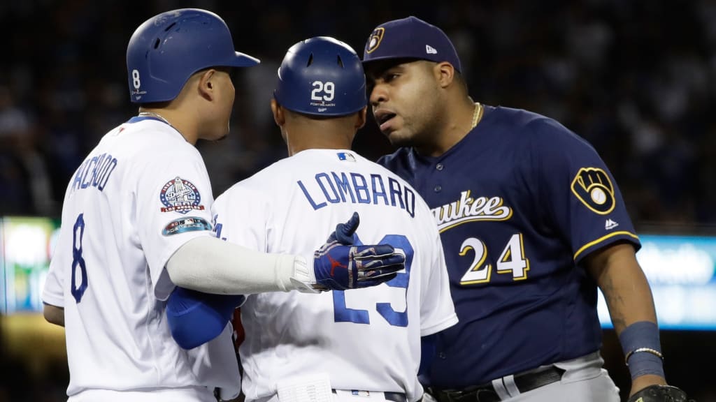 Tras conectar un sencillo en la 13ra entrada, Machado abrazó a Aguilar y acabó anotando la carrera de la victoria, tirándose para poner la pizarra 2-1 y lograr que Los Ángeles empate la serie 2-2 con Milwaukee.