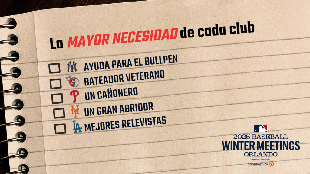 Con los ojos del mundo del béisbol puestos en Orlando, Florida, durante los próximos días para las Reuniones Invernales, es un gran momento para echar un vistazo a la mayor necesidad de cada equipo de cara al tradicional evento anual, el cual a menudo sirve como catalizador para la acción de la Estufa Caliente.