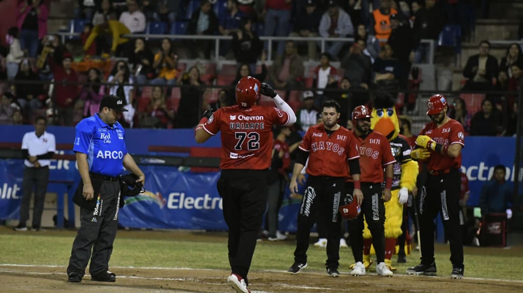 Juan Uriarte bateó de 5-1, conectó un jonrón con las bases llenas y sumó cinco carreras producidas, mientras que Misael Rivera añadió un cuadrangular de dos anotaciones para el explosivo ataque de los Mayos.