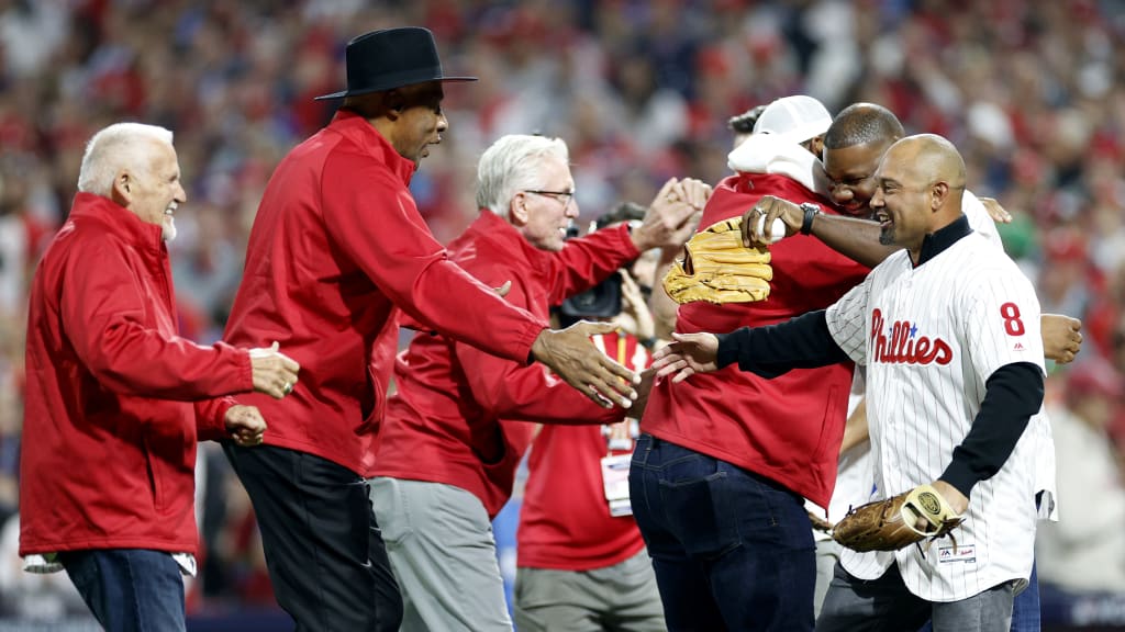 Y para conmemorar al último equipo campeón de los Filis, recibieron los lanzamientos Jayson Werth, Ryan Howard, Shane Victorino y Cole Hamels, todos miembros clave de la edición de Filadelfia que ganó la Serie Mundial del 2008.