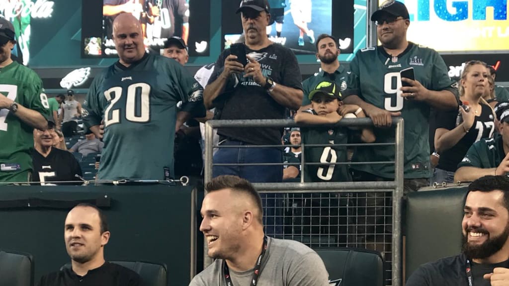 Además de ser uno de los mejores jugadores de Grandes Ligas ahora mismo (y, quizás de todos los tiempos), Michael Trout también es un fiel seguidor de las Águilas de Filadelfia de la NFL.