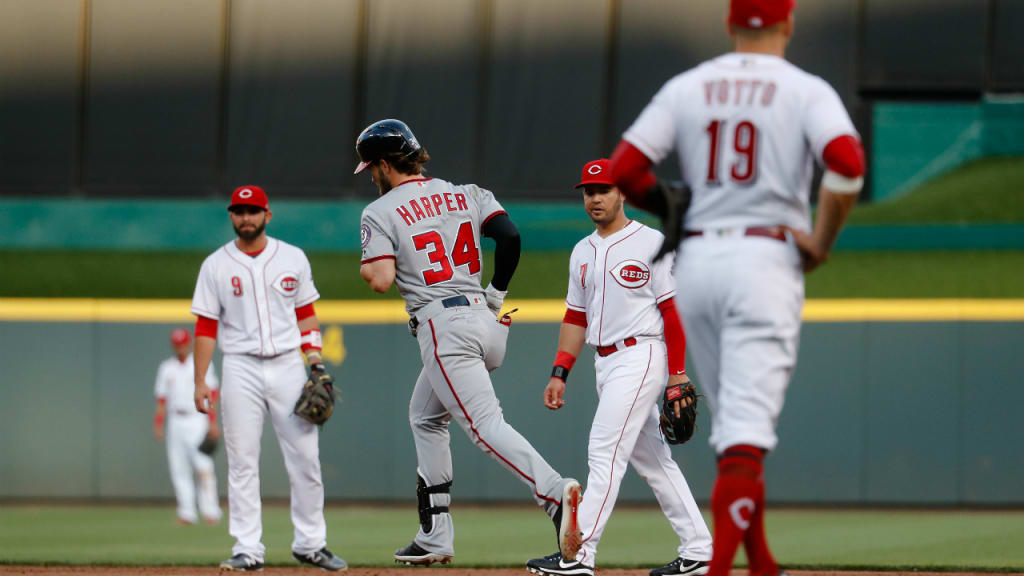 CINCINNATI -- Gio González lanzó pelota de cuatro hits hasta el noveno inning, y Bryce Harper se mantuvo encendido en julio al batear un par de jonrones para que los Nacionales de Washington derrotasen el viernes 5-0 a los Rojos de Cincinnati.