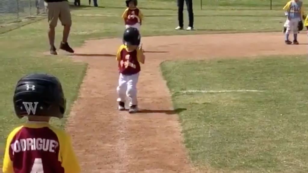 El niño no sólo demostró su mejor imitación de la manera en que los personajes de películas corren en cámara lenta, sino que también continuó haciéndolo pese a que su coach le indicó que avanzara más rápido. Esperamos que este estilo sea una sugerencia en la próxima reunión del Comité de Reglas de MLB.