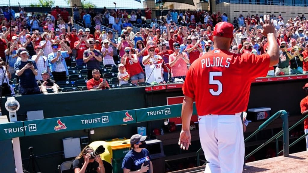 Albert Pujols is greeted by cheering fans as he runs into the Cardinals dugout pregame. pic.twitter.com/xMvK0DZCFn