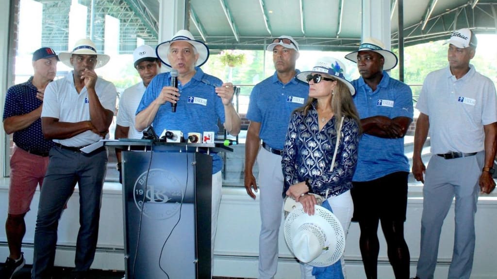El doctor Ramón Tallaj, acompañado de su esposa, Inés Hernández y de las celebridades del béisbol de la MLB, resalta la importancia de realización del torneo de Golf 2025.