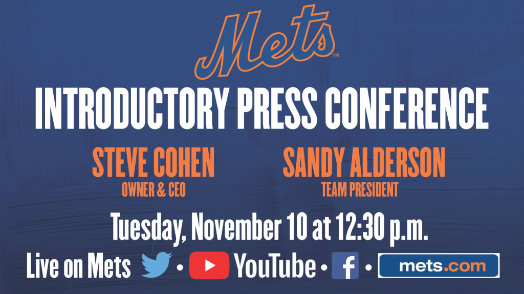 El nuevo dueño de los Mets, Steve Cohen, y el presidente del club, Sandy Alderson, sostendrán una conferencia de prensa virtual como parte de su presentación el martes a las 12:30 p.m. ET. El evento será transmitido en vivo por Mets.com así como en las plataformas de Twitter, Facebook y canales de YouTube de los Mets.